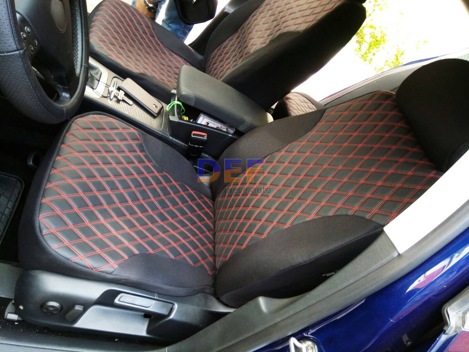 Husa auto dedicat Volkswagen Passat B6 2005-2010 PREMIUM Culoare Rosu cu Negru Sezutul este din imitatie de piele.  ,,, Modele disponibile: Material Romb tapiterie negru / cusatura rosie Cod:Y01NR Material romb tapiterie negru / cusatura neagra Cod:Y01NN Material romb tapiterie negru / cusatura albastra Cod:Y01NA Material romb tapiterie negru / cusatura gri Cod:Y01NG Material romb tapiterie bej / cusatura bej. Cod:Y01BB Material romb tapiterie maro / cusatura maro Cod:Y01MM Husele sunt fabricate in Romania sub marca proprie ART. Huse cu o calitate foarte buna, atent fabricate din materiale de calitate premium. Husele sunt fractionate. Include 9 piese: 2 x Huse sezut fata 2 x Huse spatar fata 2 x Husa sezut spate 2 x Husa spatar spate 5 x Huse tetiere Husele vin create din diferite nuante de material pe sezut ( inchise la culoare spre negru cu buline, patratele etc ) , spatele si laterale huselor se pastreaza acelasi material ( negru ). ATENTIE: Husele nu sunt compatibile cu toate autovehiculele care au airbag. Nu suntem raspunzatori in cazul unui accident.  ,,, |