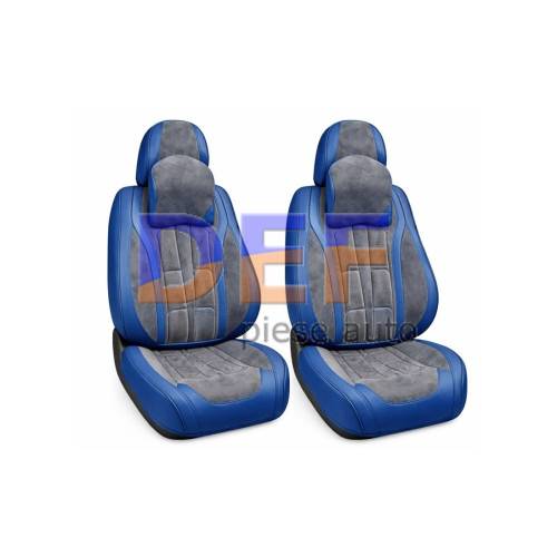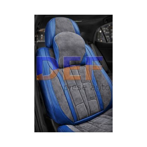 Huse scaune auto universale fractionate 9D Premium fata si spate albastru  ,,gri antracit