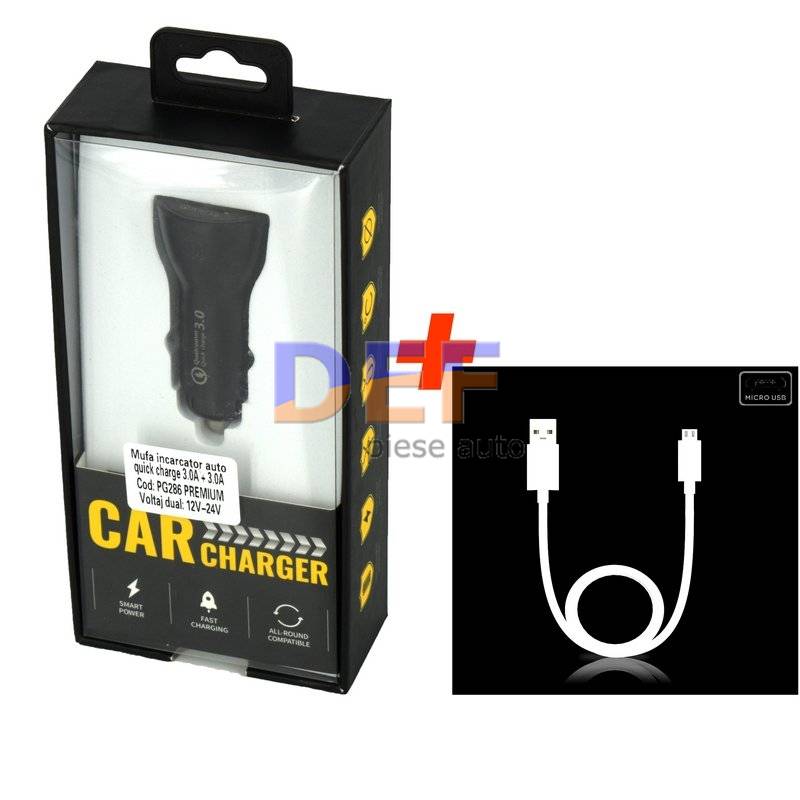 | Incarcator auto "QUICK CHARGE" 12V-24V PREMIUM 2USB X 3A. ,,,