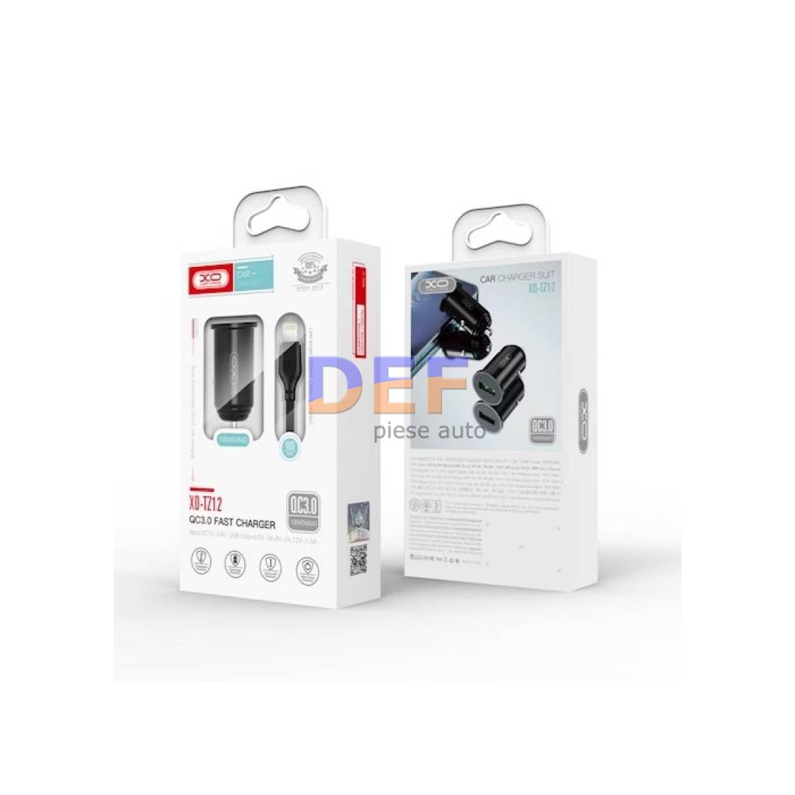 Incarcator auto Quick charge QC3.0 18W + cablu lightning compatibil Iphone Cod:XO-TZ12A |