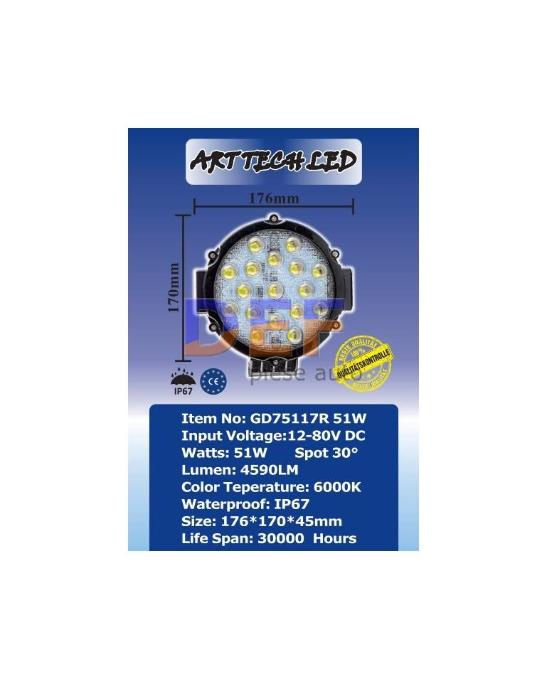 Proiector LED 51W, 12-24V Cod: GD75117R |